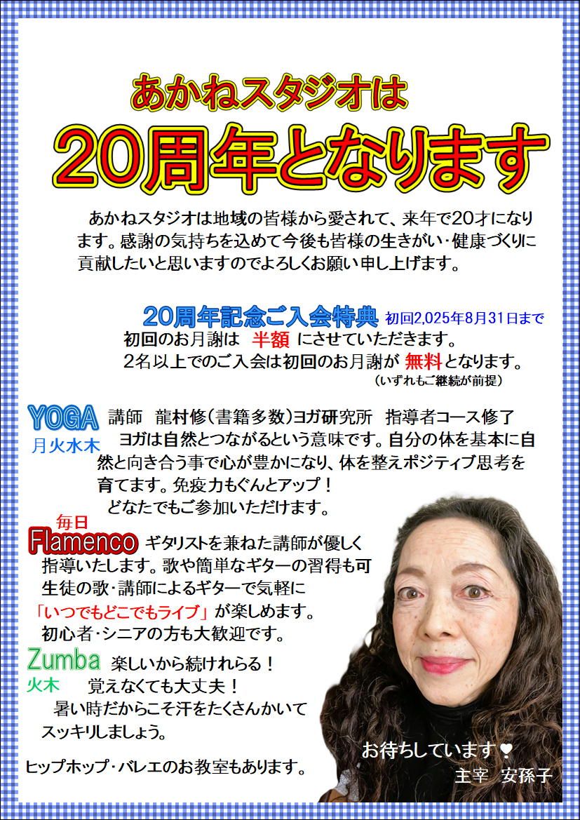 あかねスタジオ20周年記念 みんなでYOGA体験 |