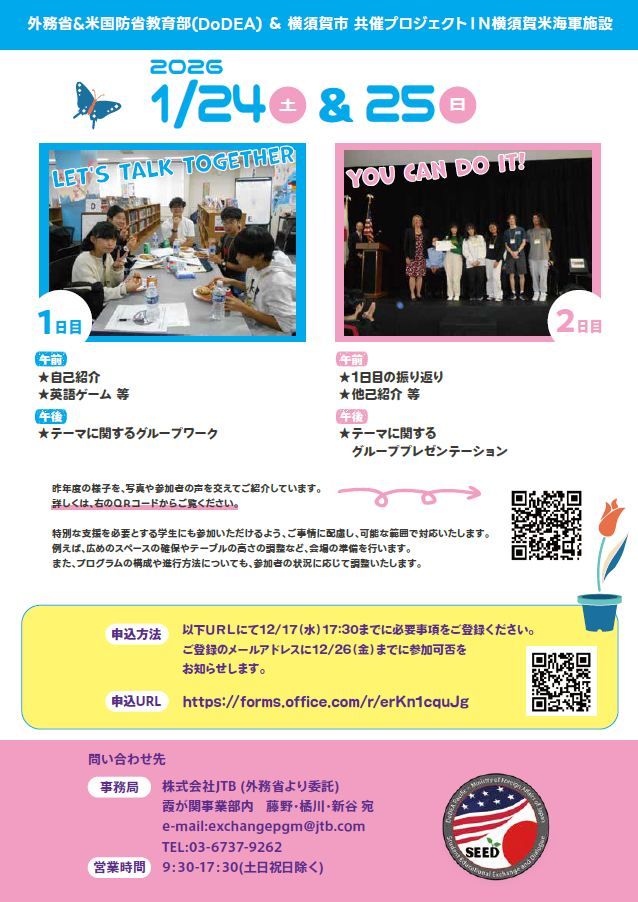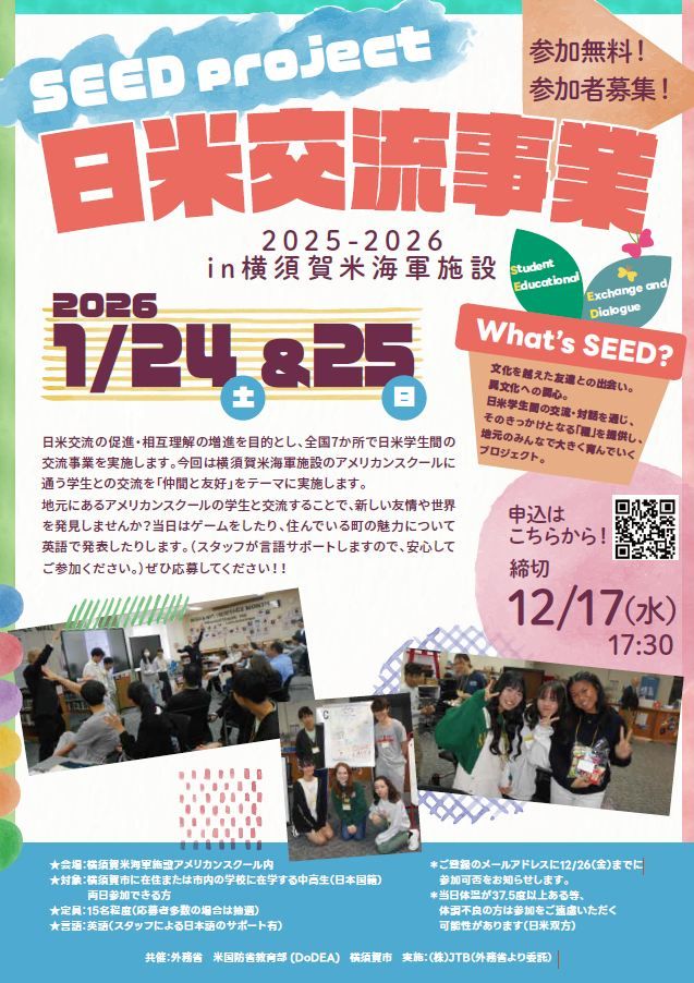対象:横須賀市に在住または市内の学校に在学する中高生(日本国籍)