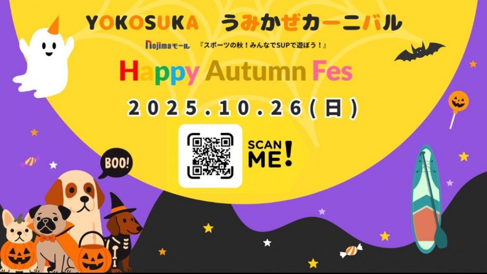本イベントは雨天予報のため、中止します。 順延などの別日での開催予定はありません。 ----------------------------------- 2025年10月26日(日)に横須賀うみかぜ公園にて「YOKOSUKA うみかぜカーニバル Happy Autumn F...