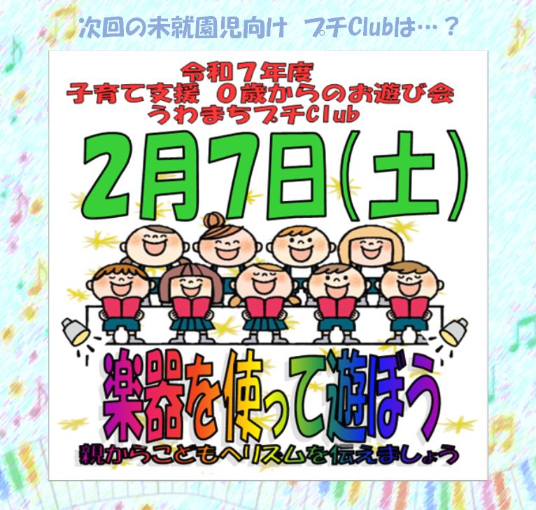 令和8年2月7日(土) 「0歳からのお遊び会 うわまちプチClub」 |