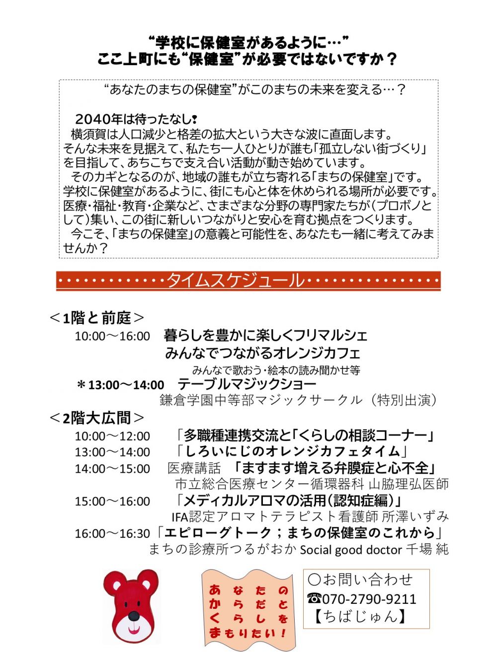 このイベントは、学校の保健室のように地域の誰もが立ち寄り、心と体を休められる場所を目指して企画されています。背景には、2040年に向けて横須賀が直面する人口減少や格差拡大といった課題に対し、「孤立しない街づくり」を推進する狙いがあります。